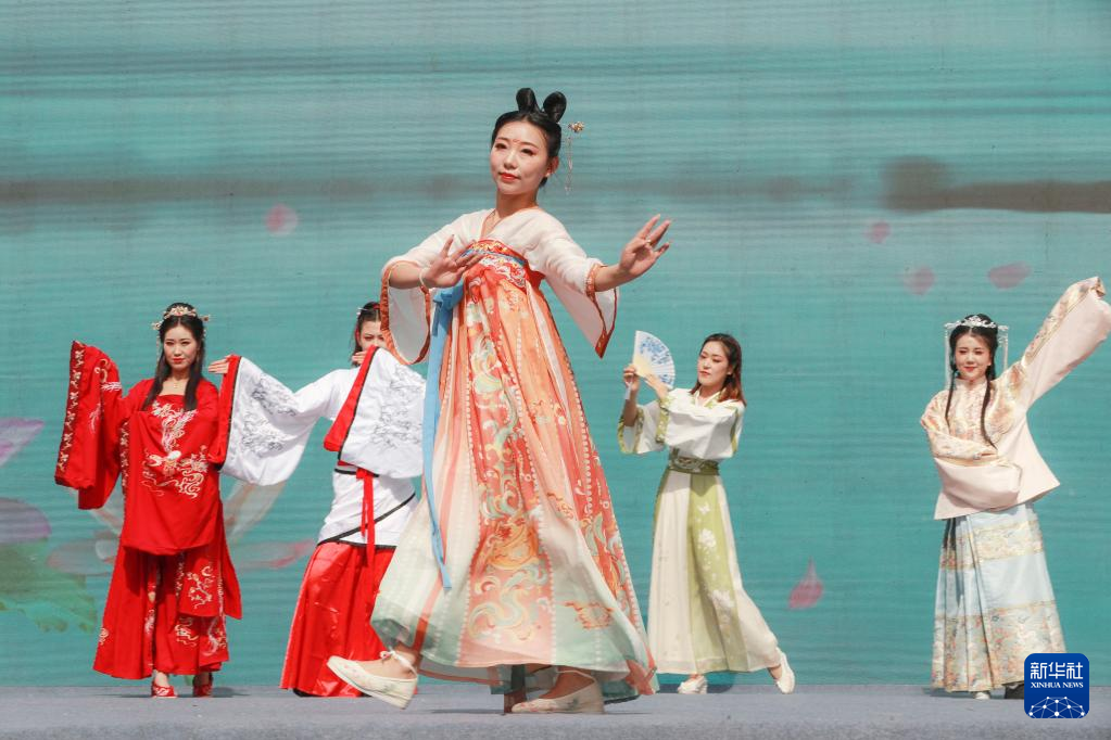 當(dāng)日,河南省葉縣首屆漢服文化節(jié)在縣城葉園開(kāi)幕。漢服巡游、漢風(fēng)國(guó)韻演出等豐富多彩的活動(dòng),吸引了眾多游客和市民前來(lái)觀看,感受漢服文化的魅力。新華社發(fā)(何五昌攝)