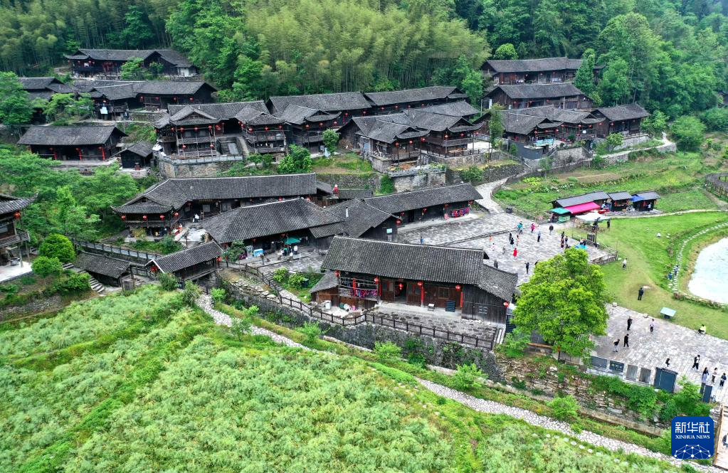 位于湖北省宣恩縣沙道溝鎮(zhèn)的彭家寨古吊腳樓群歷史悠久,吊腳樓保存完好,古樸雅致,是當?shù)孛袼孜幕糜蔚臒衢T打卡地(5月2日攝,無人機照片)。