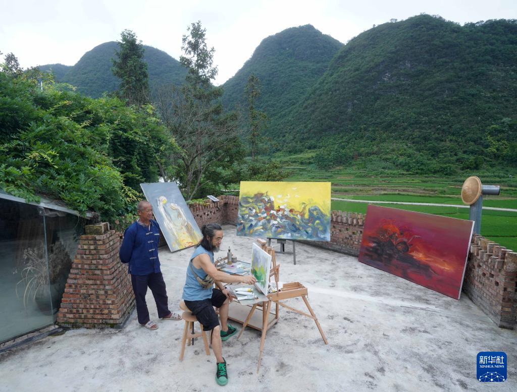 近年來,貴州省黔南布依族苗族自治州荔波縣朝陽鎮(zhèn)洪江村以田野風(fēng)光和閑置老房為媒介,吸引了來自全國各地的100多名藝術(shù)從業(yè)者前來“認(rèn)養(yǎng)”、修繕舊民居,使之成為自己的工作室。一座座閑置的舊民居在藝術(shù)從業(yè)者手中煥然一新,村民也從舊民居出售、出租與改造中獲得收入,走出了一條助力鄉(xiāng)村振興的新路徑。新華社發(fā)(肖偉 攝)