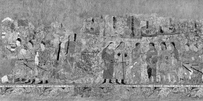 撒馬爾罕康國王宮遺址壁畫 資料圖片