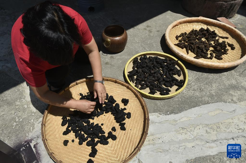 8月4日,在禹州中醫(yī)藥文化技藝傳習館,非遺項目“禹州中藥加工炮制技藝”代表性傳承人朱改蓮展示中藥材“九蒸九曬”加工技藝。