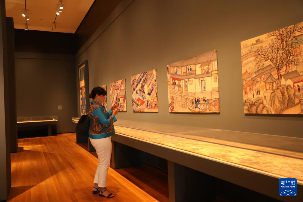 9月6日,在美國(guó)俄亥俄州克利夫蘭藝術(shù)博物館,一名男子參觀“人間天堂:中國(guó)江南珍寶展”。新華社記者施春攝