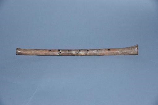 展覽中,一件出土于河南省漯河市舞陽(yáng)縣賈湖遺址的賈湖骨笛吸引了不少觀眾的目光。據(jù)介紹,骨笛以鶴類動(dòng)物的尺骨鉆孔而成,是迄今為止我國(guó)發(fā)現(xiàn)最早、保存最完整的管樂(lè)器。