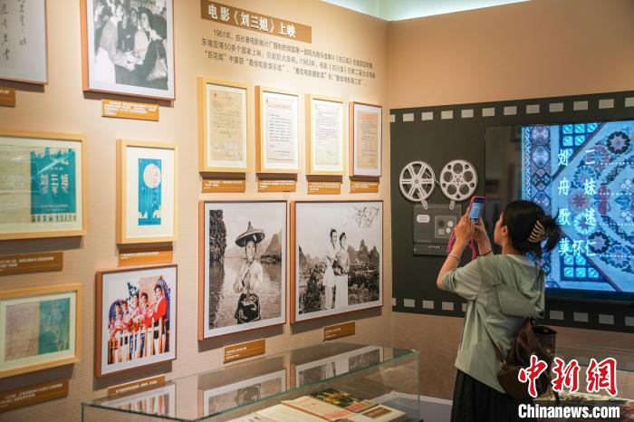 本次展覽上,有近百件劉三姐文化檔案首次亮相。展品中,彩調(diào)劇《劉三姐》劇本第一方案原稿、1960年5月越南胡志明主席在南寧觀看歌劇“劉三姐”后與演員合影照片、1963年6月原中國文化部批復同意向印度尼西亞華僑提供《劉三姐》有關資料等珍貴檔案資料,吸引參觀者駐足觀看。