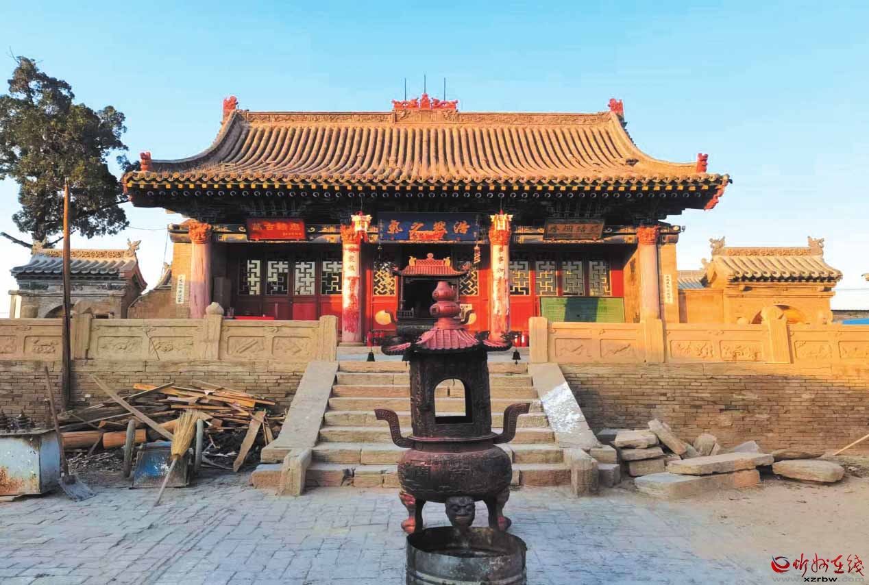 東關(guān)關(guān)帝廟位于原平市崞陽鎮(zhèn)東關(guān)村,距崞陽城東門外約100米。始建年代不詳,據(jù)正殿梁架題記載,清咸豐三年(1953)重修,現(xiàn)存建筑為清代遺構(gòu)。東西長25.5米,南北寬87米,占地面積2218平方米。坐北朝南,二進(jìn)院落布局,中軸線建有影壁、大門、正殿和圣母殿,兩側(cè)為東西配殿。正殿磚砌臺基,前設(shè)月臺,其上三面設(shè)勾欄、望柱,欄上雕有各種花卉、如意及禽獸。殿身面寬三間,進(jìn)深六椽,單檐懸山頂。七檁前后廊式構(gòu)架,斗拱五踩重翹,平身科每間一攢,出45度斜拱,前檐各間均設(shè)四扇六抹萬字紋格扇門,殿內(nèi)新塑像3尊。圣母殿磚砌臺基,殿身面寬三間,進(jìn)深三椽,單檐硬山頂,四檁前廊式構(gòu)架。明間四扇六抹萬字紋格扇門,次間為格扇窗。殿內(nèi)新塑像3尊。廟內(nèi)存清代重修關(guān)帝廟碑3通,殘碑1通,石獅2對。1981年列為原平市(縣級)文物保護(hù)單位。2022年列為第三批市級文物保護(hù)單位。