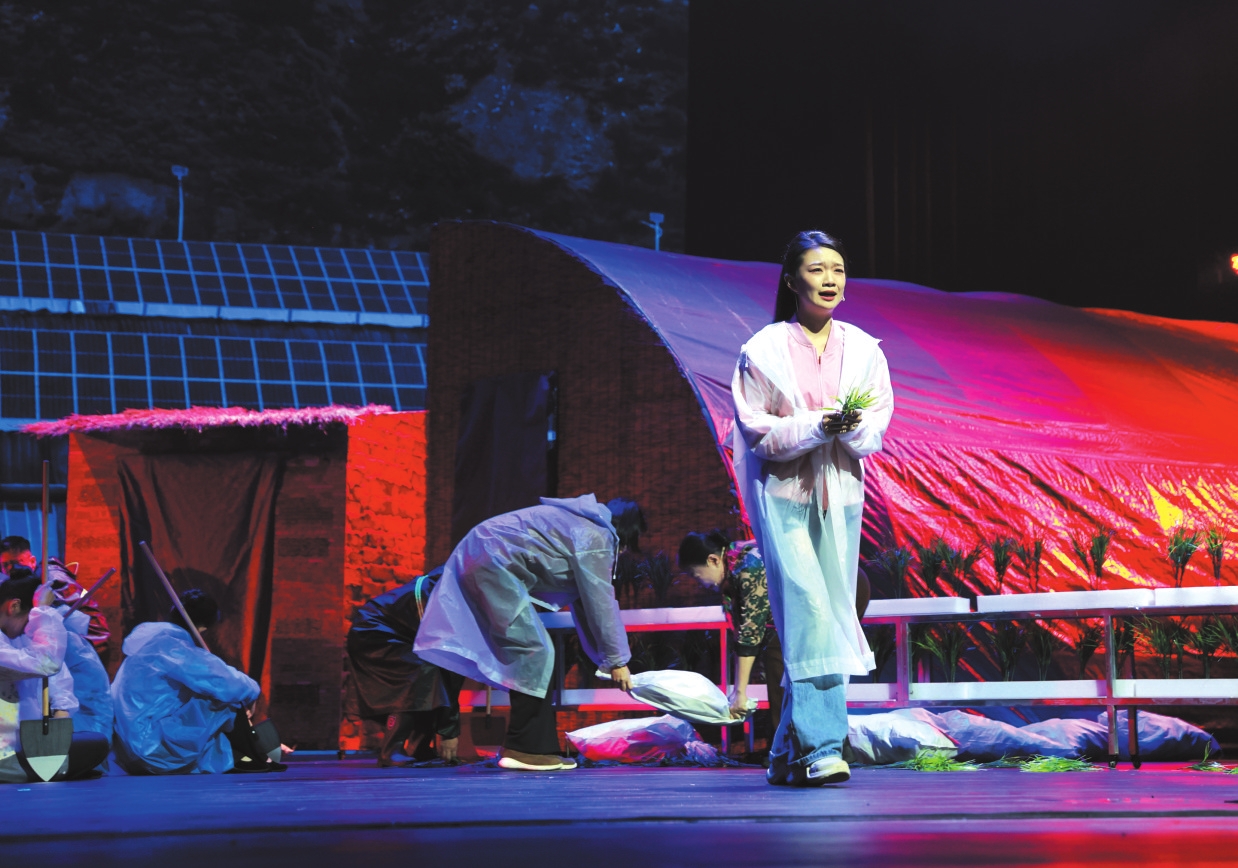 我們看到,話(huà)劇《三棵樹(shù)下》整個(gè)演出過(guò)程緊湊,過(guò)渡自然,其中不乏生動(dòng)活潑的人物形象,李小雨之外,曹民財(cái)作為一個(gè)襯托她的角色,也是別具匠心,他的游手好閑,他的酒醉傷人,他的無(wú)賴(lài)行徑,以及他后面的順應(yīng)時(shí)勢(shì)、搖身一變成為網(wǎng)紅達(dá)人,為村里農(nóng)特產(chǎn)品的營(yíng)銷(xiāo)做出特殊貢獻(xiàn),都活靈活現(xiàn),成為整個(gè)劇中一個(gè)鮮明的點(diǎn)。