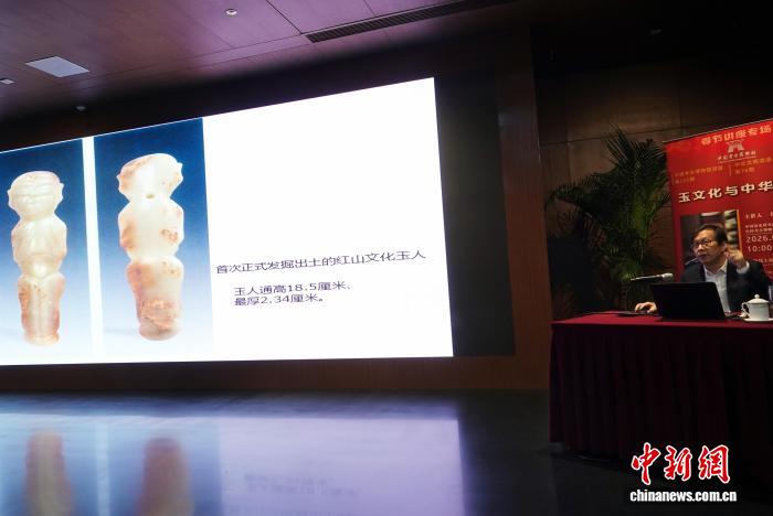2月22日,中國考古博物館春節(jié)講座專場,劉國祥研究員作“玉文化與中華文明”主題學(xué)術(shù)報(bào)告,介紹紅山文化玉人。中新網(wǎng)記者 孫自法 攝