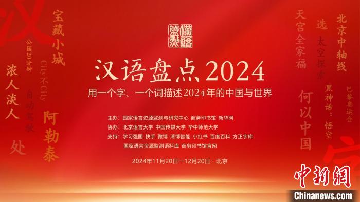 由國(guó)家語(yǔ)言資源監(jiān)測(cè)與研究中心、商務(wù)印書(shū)館等聯(lián)合主辦的“漢語(yǔ)盤點(diǎn)2024”20日在京啟動(dòng),“用一個(gè)字、一個(gè)詞描述當(dāng)年的中國(guó)與世界”,鼓勵(lì)全民用語(yǔ)言記錄生活,描述中國(guó)視野下的社會(huì)變遷和世界萬(wàn)象。