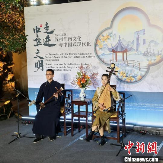 中新網(wǎng)蘇州11月29日電 (記者 鐘升)“月落烏啼霜滿天……”28日夜,蘇州古城華燈初上。以一曲蘇州評(píng)彈《楓橋夜泊》為引,“走進(jìn)中華文明——蘇州江南文化與中國(guó)式現(xiàn)代化”主題人文交流活動(dòng)在世界文化遺產(chǎn)獅子林拉開帷幕。