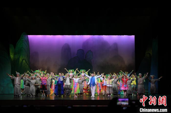 圖為彩調(diào)劇《新劉三姐》。廣西戲劇院 供圖 廣西戲劇院以山歌回蕩城市文創(chuàng)街區(qū),傳統(tǒng)藝術點亮城市時尚。活動期間,南寧市百益上河城工業(yè)文化創(chuàng)意園,彩調(diào)劇《劉三姐·盤歌》選段亮相2025年“廣西三月三·八桂嘉年華”南寧市“綠城歌臺”群眾文化活動,詼諧幽默的盤歌對唱,吸引年輕觀眾互動,形成傳統(tǒng)與現(xiàn)代交融的獨特觀感。 此外,在“廣西三月三·八桂嘉年華”開幕式暨“四季村歌”活動啟動儀式上,廣西戲劇院“新劉三姐”扮演者陳慧身著絢麗民族盛裝,攜手多地游客共唱山歌,融合平衡車表演和戲曲唱腔的演繹方式,展現(xiàn)廣西山歌與時俱進演變過程,為廣西“三月三”這場民族盛會添新潮。