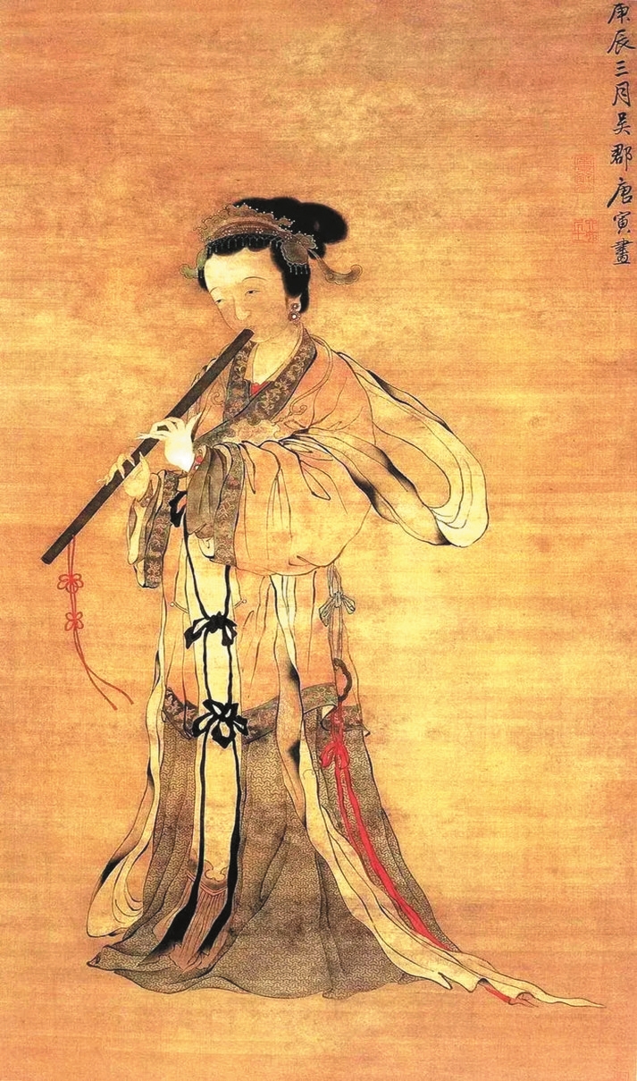 明·唐寅《吹簫仕女圖》