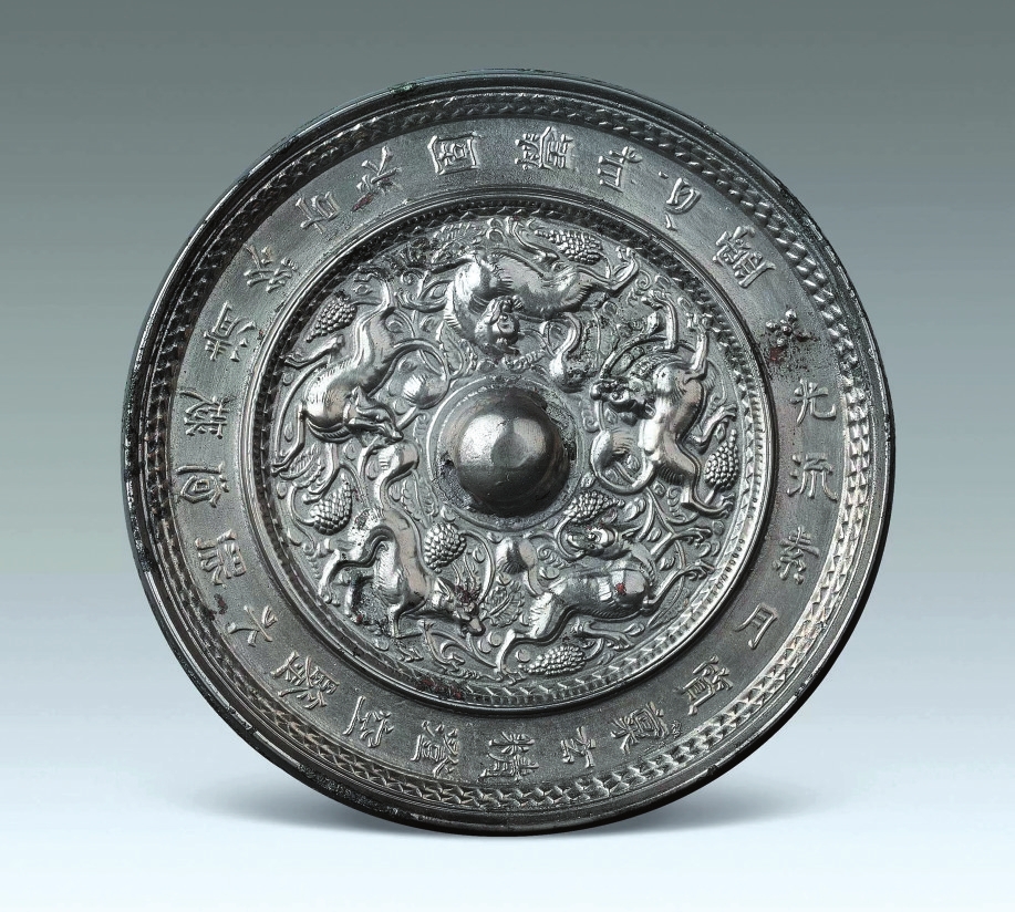 1966年陜西省西安市動力廠出土了一面光流素月瑞獸鏡,鏡銘為“光流素月,質(zhì)稟玄精。澄空鑒水,照回凝清。終古永固,瑩此心靈”。外圍銘文帶與內(nèi)區(qū)瑞獸紋相映成趣,展示出獨(dú)具特色的藝術(shù)美感。