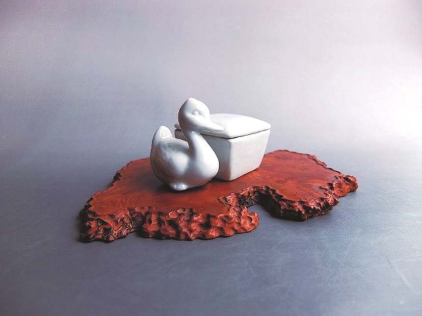 過去的二十多年間,這只小鴨始終擺在我的書案上。每當鈐印時,看著它繞缸游動的姿態(tài),總會想起《考工記》中“天有時,地有氣,材有美,工有巧”的造物真諦。
