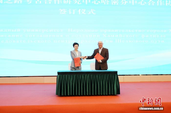 中新網西安9月17日電 (記者 阿琳娜)記者17日從絲綢之路考古合作研究中心獲悉,西北大學與哈密市人民政府校地全面合作協議簽訂暨絲綢之路考古合作研究中心哈密分中心揭牌儀式15日在新疆維吾爾自治區(qū)哈密市舉行。