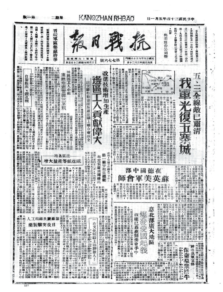 抗戰(zhàn)時(shí)期,忻州既是晉察冀、晉綏兩大根據(jù)地的中心腹地,也是抗戰(zhàn)初期全面抗敵的主戰(zhàn)場(chǎng)。忻州以其地理咽喉、戰(zhàn)役要沖、根據(jù)地核心和人民戰(zhàn)爭典范的多重角色,成為抗日戰(zhàn)爭中抵御日軍侵略、堅(jiān)持?jǐn)澈蠖窢幍膽?zhàn)略支點(diǎn)之一。其歷史貢獻(xiàn)不僅體現(xiàn)在軍事上,更彰顯了中華民族不屈不撓的抗戰(zhàn)精神。隨著八路軍平型關(guān)大捷、雁門關(guān)伏擊戰(zhàn)、夜襲陽明堡飛機(jī)場(chǎng)等戰(zhàn)役勝利,1937年11月7日晉察冀軍區(qū)在五臺(tái)成立。12月11日,《抗敵報(bào)》誕生。1940年11月,《抗敵報(bào)》改名為《晉察冀日?qǐng)?bào)》,鄧拓任報(bào)社主任?!犊箶硤?bào)》最初在五臺(tái)石嘴村石印,后改鉛印。1938年1月,晉察冀邊區(qū)行政委員會(huì)在河北阜平成立,兩月后,邊區(qū)行政委員會(huì)遷駐五臺(tái)射虎川臺(tái)麓寺,報(bào)社、印刷廠分駐海慧庵、蛤蟆石古佛寺。1940年9月18日,晉綏分局機(jī)關(guān)報(bào)《抗戰(zhàn)日?qǐng)?bào)》,伴隨著隆隆炮火聲,在距離忻州不遠(yuǎn)的興縣艱難創(chuàng)刊。自此,那些戰(zhàn)地記者、通訊員甚或普通民眾,有名的,無名的,以個(gè)人名義,以集體名義,在極其艱苦的條件下,用滾燙筆尖秉筆直書,為我們珍存了那些發(fā)生在忻州大地上前仆后繼、可歌可泣的抗戰(zhàn)故事,也讓今天的人們一旦捧讀就會(huì)熱血沸騰。