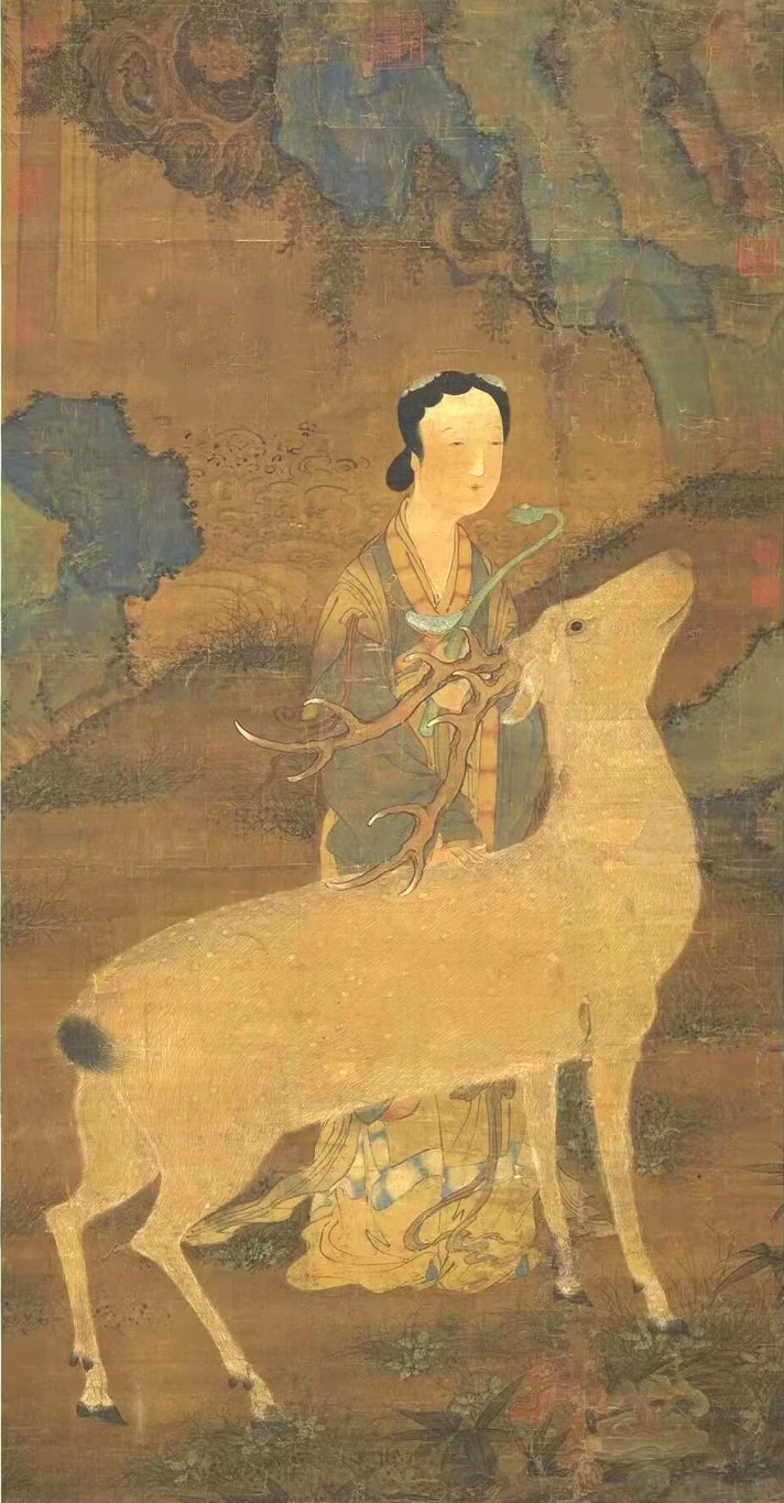 仙巖壽鹿圖 鹿還是祥瑞的象征,早在仰韶文化時期,鹿紋便與鳥紋、魚紋和蛙紋合稱為四大圖騰之象?!洞呵镞\(yùn)斗樞》記載,“瑤光散為鹿”,瑤光為祥瑞之光,鹿是由瑤光凝聚而成,象征吉祥。傳說,龍和麒麟這兩種神圣的動物,其形象也都源于鹿,龍角的造型就跟鹿角相像。在傳統(tǒng)壽畫中,鹿多與壽星相伴,鹿口銜靈芝的圖案被用來表達(dá)長壽的祝愿。此外,“鹿”與“祿”諧音,代表福祿和官運(yùn),常與仙鶴、蝙蝠、松柏等元素一同構(gòu)成圖案,寓意吉祥與富貴。當(dāng)一百頭鹿匯聚在一起時,被贊譽(yù)為“百祿”,寓意著無盡的財富與福祿。而鹿與蝙蝠的結(jié)合,則象征“福祿雙全”?!奥埂迸c“路”諧音,亦有四通八達(dá)、一帆風(fēng)順之意。 敦煌莫高窟第257窟的《鹿王本生圖》,是北魏時期的橫卷式壁畫,也是同類題材中保存最完整的連環(huán)畫,講述一只美麗的九色鹿王,救了一個不慎落入水中快被淹死的人,然而卻被此人出賣的故事。1981年上海美術(shù)電影制片廠推出的經(jīng)典動畫片《九色鹿》,就是以此壁畫為原型。 鹿還是愛情的象征,在古人的婚禮中承載著特殊寓意?!秲x禮》中記載士子納征之禮規(guī)定“納征,玄纁束帛、儷皮,如納吉禮”,“儷皮”就是指兩張鹿皮。在婚禮納征環(huán)節(jié),鹿皮被視為重要的贄禮,寄寓著子孫繁茂、人丁興旺的美好愿望。此外,成語“鴻案鹿車”,也生動描繪了夫妻間恩愛兩不疑、同甘共苦的深厚情感。如今,“小鹿亂撞”更是年輕人表達(dá)心動、愛情的經(jīng)典用語。 鹿巾是古代隱士的服飾,由鹿皮巾簡化而來,特指古代用鹿皮制成的頭巾,又稱“鹿幘”。古代隱士以戴梅花鹿皮帽為其身份象征,唐代詩人韋莊在《雨霽池上作呈侯學(xué)士》中,通過一句“鹿巾藜杖葛衣輕”,勾勒出隱士身著鹿巾、手持藜杖的淡泊形象。鹿元素還被廣泛運(yùn)用在瓷器、織繡、木雕、年畫、建筑的裝飾圖案中。秦代時,畫像磚上就已出現(xiàn)“鹿車升仙”圖案。宋代定窯瓷器上的鹿紋,以細(xì)膩的工藝模仿寫生鹿畫。金代的印花臥鹿百褶盤,以一頭臥鹿為主畫面,周邊環(huán)繞牡丹、蓮荷、菊花、葵花、芍藥等圖案。在當(dāng)代設(shè)計(jì)中,也有不少運(yùn)用鹿元素的案例。如深圳鹿鳴文化主題公園的標(biāo)志設(shè)計(jì),將傳統(tǒng)鹿形剪影進(jìn)行幾何化與簡約化處理,線條簡潔明快而富有動感,既保留了古典韻味,又注入現(xiàn)代視覺語言的精練之美。一些當(dāng)代家居設(shè)計(jì),將鹿角的精致分形特征抽象為燈具造型,既彰顯了典雅格調(diào),又承載了豐富的文化內(nèi)涵。故宮博物院推出的“畫游千里江山”數(shù)字沉浸展覽,通過前沿投影及互動技術(shù)的巧妙運(yùn)用,使古畫中的鹿栩栩如生。觀眾仿佛置身山水之間,親近悠閑的鹿群,實(shí)現(xiàn)了跨越時空的文化漫游。(張健 薛舒陽) (責(zé)任編輯:盧相?。?/span> |