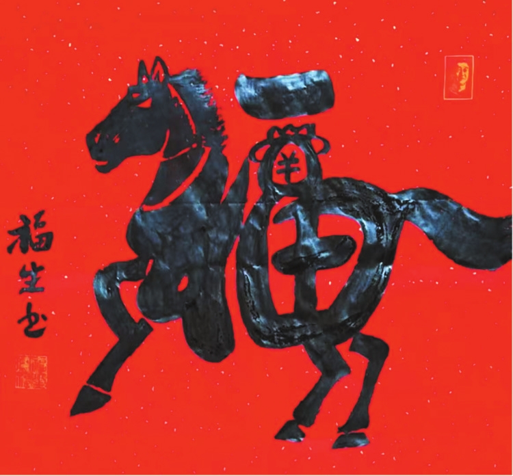 馬上福 王福生 作 書者,心之跡也。在中國書法藝術(shù)的星河里,“?!弊质冀K是最具生命力、最具親和力的文化符號(hào)。當(dāng)代書壇,忻州名家王福生,以半生閱歷為基,以筆墨情懷為魂,將從政之德、處世之懷、從藝之癡熔于一爐,以“?!弊譃楹诵膭?chuàng)作載體,為這一古老文化符號(hào)注入了獨(dú)屬于時(shí)代的風(fēng)骨、力量與溫度。 根脈筑基:人生修為鑄就福字創(chuàng)作底色 王福生福字書法之根,深植于三晉厚土;福韻之魂,源自于家國情懷與半生修為。他數(shù)十年公仆生涯,守正持心,務(wù)實(shí)篤行?!盀楣僖蝗?、造福一方”的初心使命,化作了筆墨里的端正、沉穩(wěn)、坦蕩與擔(dān)當(dāng),讓筆下之福,無纖巧浮滑之氣,有正大光明之質(zhì)。 他性情爽直,心胸如海,平生雅好文藝,尤嗜福字書法,數(shù)十年臨池不輟,筆耕不止。其藝術(shù)之路師承有序,得鮑其偉先生親傳,又受多位書畫名家面授指點(diǎn),博采眾長,兼收并蓄,終在福字創(chuàng)作上自成一格。其福字線條如斧劈刀削,結(jié)體寬博沉雄,既是三晉山川風(fēng)骨的投射,亦是半生人生閱歷的精神映像。 得意忘“形”:王福生創(chuàng)意福字的道家意蘊(yùn)與藝術(shù)獨(dú)創(chuàng) 王福生的福字創(chuàng)作,深得“得意忘言”的道家美學(xué)精髓——不拘泥于福字字形刻板,而以意馭筆,以情入墨,形隨情變,福由心生。他以“融形會(huì)意”為核心,跳出傳統(tǒng)福字單字書寫的桎梏,以合體字、意象字為載體,將漢字構(gòu)形、民俗意象、親情溫度與筆墨韻味融為一體,形成其“字中有畫、畫中藏字、字福相生”的獨(dú)特福字藝術(shù)語言。 親情融形福:相濡以沫的人間至福 在王福生的創(chuàng)意福字中,以親情為主題的福作最具溫度、最動(dòng)人心。他巧構(gòu)福字形體,暗合字理,以一筆一畫,將人間相守之福凝于一字。一幅紅底灑金福字,左部“礻”化作老翁剪影,蒼勁挺拔;右部“畐”勾勒老嫗形態(tài),溫婉相依。二老相視而近,低語相守,下方“田”化為安身立命的家園,寥寥數(shù)筆,將夫妻相伴、相濡以沫的人間至情,凝于一個(gè)字中。在他的筆下,不僅僅是哲學(xué)之語,更是可感、可見、可入心的人間真福。 生肖會(huì)意福:與時(shí)俱化的自然福道 生肖文化,是中華民俗之根脈,王福生緊扣福字主題,應(yīng)時(shí)而作,應(yīng)物而書,將十二生肖意象與福字完美融合,創(chuàng)作出獨(dú)具氣象的“生肖?!毕盗校嫌凇兜赖陆?jīng)》“動(dòng)善時(shí)”的智慧——順天時(shí),合地利,應(yīng)人心,與時(shí)俱化。其馬年“馬上?!笨胺Q福字神品:以草書筆勢,將“福”與“馬”渾然合一,“礻”為駿馬昂首,鬃毛飛揚(yáng);“畐”為身軀矯健,奮蹄向前;“田”化為鞍飾,點(diǎn)睛傳神。整幅福作一氣呵成,筆走龍蛇,靈動(dòng)奔放,卻又穩(wěn)而不飄,勁而不躁,正是老子“知其雄,守其雌”的筆墨體現(xiàn)。 福壽合一福:返璞歸真的生命福境 “福壽雙全”,是中國人最樸素、最極致的生命祈愿。王福生承續(xù)康熙“天下第一?!敝欧?,又自出機(jī)杼,在創(chuàng)作中融入壽字意象,書成“福壽合一”的經(jīng)典福字形制。他以榜書筆意,將壽字融于福字之中,上為壽首,下為壽體,福中有壽,壽內(nèi)含福,筆畫蒼勁如古松,結(jié)體穩(wěn)如磐石,寓意福壽綿長、相依相生。 技近乎道:王福生福字書法的藝術(shù)境界 王福生之福字書法,由技入道,以法度筑基,以精神升華,力量、節(jié)奏、立體三美兼具,章法、結(jié)體、神采渾然一體,臻于自然天成之境,讓福字在筆墨法度中盡顯神韻。 三美兼具:力、韻、形的福字道法自然 ——力量感:藏力于墨,剛?cè)岵?jì) 其福字書法力量,內(nèi)蘊(yùn)而不外露,深得“藏頭護(hù)尾,力在字中”之古法。福字點(diǎn)畫有往必收,有始有終,中鋒行筆,澀勁內(nèi)含,線條渾圓淳和,溫而不弱,柔中藏剛。他不刻意張揚(yáng)鋒芒,卻于溫潤間見千鈞之力, ——節(jié)奏感:疾徐有致,韻律天成 書法之節(jié)奏,存于提按、快慢、輕重、粗細(xì)之間,其書寫福字,隨心而變,應(yīng)勢而化,輕重交替,長短相生,大小錯(cuò)落,形成自然流動(dòng)的韻律。寫福之筆,時(shí)而沉穩(wěn)如磐石,盡顯福字的厚重端莊;時(shí)而靈動(dòng)如流泉,盡顯福字的靈動(dòng)灑脫;時(shí)而奔放如奔馬,盡顯福字的恢弘氣象。 ——立體感:中鋒立骨,側(cè)鋒相輔 其福字立體感,源于中鋒用筆之精妙。中鋒落紙,墨聚中心,福字線條飽滿圓實(shí),渾厚立體,如古人所言“映日視之,畫之中心,有一縷濃墨正當(dāng)其中”。同時(shí)他以側(cè)鋒為輔,互補(bǔ)相生,豐富福字層次,使筆畫如雕如塑,質(zhì)感卓然,以中鋒為一,以側(cè)鋒為用,讓福字骨力與質(zhì)感兼?zhèn)?,躍然紙上。 章法自如:平正通達(dá),福字格局天成 其福字書法章法,講究結(jié)字、行氣、通篇三位一體,平正中見變化,嚴(yán)謹(jǐn)中顯灑脫。單字福字,結(jié)體整齊平正,長短合度,疏密均衡,端莊而不呆板;多行福書,行氣上下承接,左右呼應(yīng),血脈暢通,一氣呵成;整體福字作品布局,疏密得宜,欹正相生,參差錯(cuò)落,讓福字不僅有吉祥之形,更有格局氣象。 神采意味:形神兼?zhèn)?,福韻意境高遠(yuǎn) 書法之至高境界,在于神采,王福生之福字書法,形為體,神為魂,以筆墨載福韻,以點(diǎn)畫立精神。其