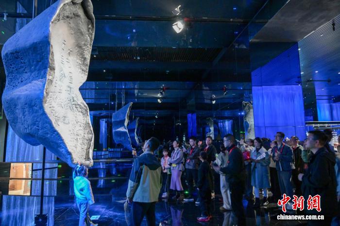 3月8日,四川省眉山市彭山區(qū)江口沉銀博物館迎來首批預(yù)約觀眾。圖為參觀者在博物館內(nèi)打卡拍照。 記者 劉忠俊 攝