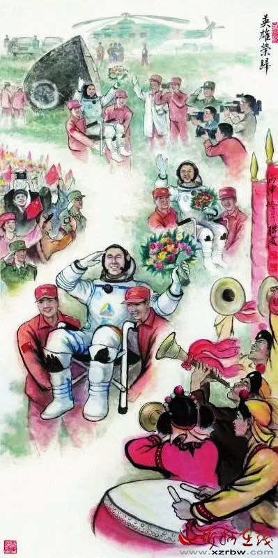 上天攬月喜榮歸,歡慶鮮花映日輝。 臥薪嘗膽強國夢,任馳宇宙斗芳菲。 俺是人民子弟兵