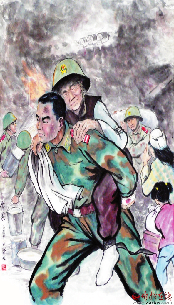 不負人民養(yǎng)育恩,熊熊烈火見真情。 和平戰(zhàn)事同聽喚,血肉長城更堅固。 無臂繡娘
