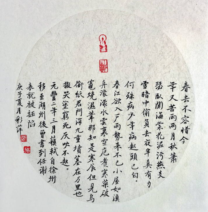 遺山詩社近期刊登的呂彩萍作品專輯,內(nèi)容上大致可分兩類:一是有關(guān)抗疫的時事情狀;二是吟詠梅蘭竹菊等花草植物以及四季更替、重要節(jié)日等,托風(fēng)雅之詞,明自我心性。從藝術(shù)角度看,這些作品或沉思、或靈動,思緒開闊,韻致嫣然,詞畫有機相融,用典自如妥切,抒情性于辭采,詠雅志而不自矜。涵詠其間,若瓊花滿地,玉階生輝,天籟清風(fēng)吹散密云,月下疏影暗吐清香。仔細品讀,可感受到作品呈現(xiàn)出的四種藝術(shù)之美,本文試作解讀。