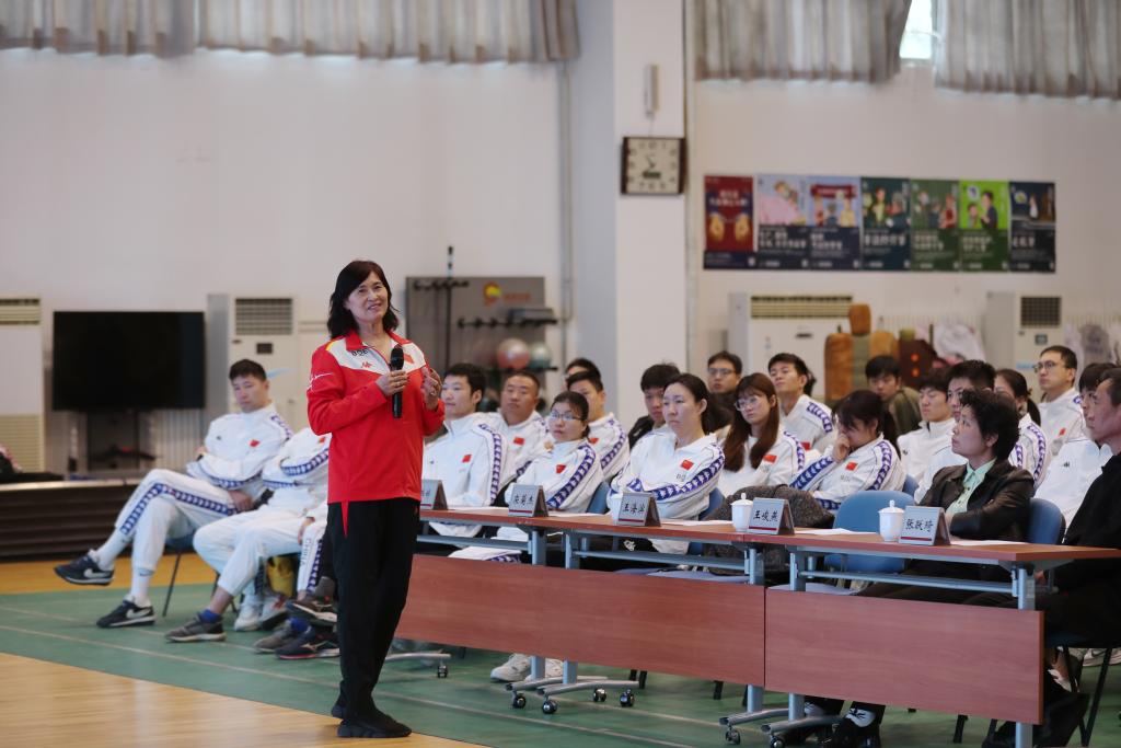 欒菊杰進(jìn)行主題講座。圖源中國(guó)擊劍協(xié)會(huì) 隨著國(guó)際劍聯(lián)2023-2024賽季拉開戰(zhàn)幕,中國(guó)擊劍隊(duì)迎來(lái)爭(zhēng)取巴黎奧運(yùn)會(huì)資格的關(guān)鍵時(shí)期。當(dāng)天,國(guó)家隊(duì)、青年隊(duì)全體運(yùn)動(dòng)員及中國(guó)擊劍協(xié)會(huì)工作人員聆聽了講座,并就如何面對(duì)氣場(chǎng)強(qiáng)大的對(duì)手、如何在落后時(shí)調(diào)整心態(tài)等問(wèn)題與前輩進(jìn)行互動(dòng)。 中國(guó)擊劍隊(duì)總教練王海濱表示,希望通過(guò)這次主題活動(dòng)來(lái)鍛造、傳承隊(duì)伍的精神?!昂芏噙\(yùn)動(dòng)員可能只在書上或者電視上見過(guò)欒菊杰的名字,這種面對(duì)面的交流還是第一次。這對(duì)于我們備戰(zhàn)巴黎奧運(yùn)會(huì)非常有幫助,能讓運(yùn)動(dòng)員們明白任何事情都必須要有堅(jiān)持的毅力和面對(duì)困難的決心。”王海濱說(shuō)。