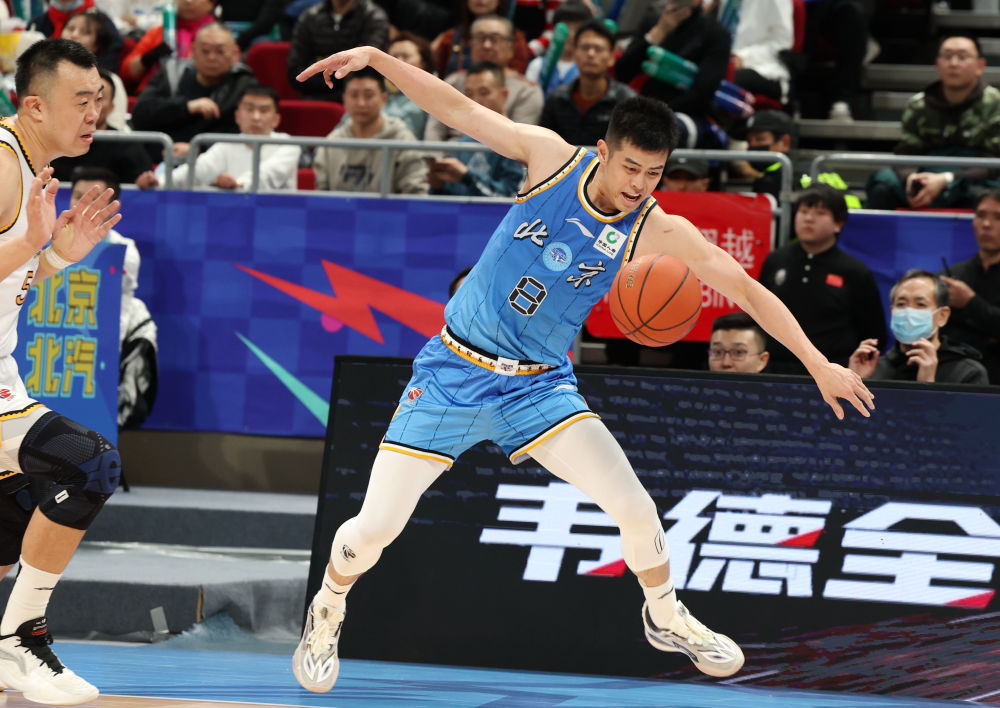 1月14日,北京隊球員方碩在比賽中突破受阻。新華社記者 張晨霖 攝