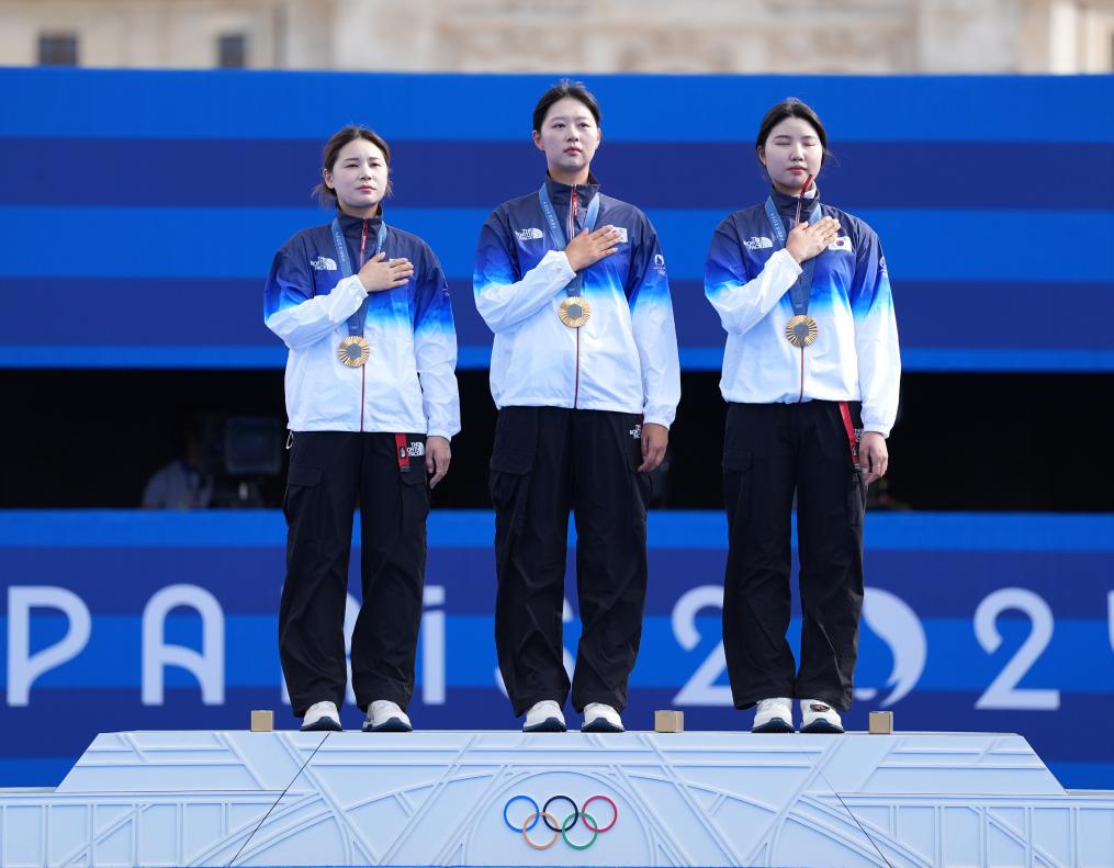 新華社巴黎7月28日電(記者王君寶 徐鵬航)在28日結(jié)束的巴黎奧運(yùn)會射箭女子團(tuán)體金牌賽中,由林是見、南秀賢和全勛英領(lǐng)銜的衛(wèi)冕冠軍韓國隊(duì),險(xiǎn)勝由李佳蔓、楊曉蕾、安琦軒組成的中國隊(duì),收獲在這個(gè)項(xiàng)目上的十連冠。