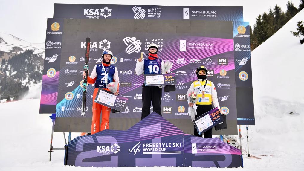 王心迪(中)、齊廣璞(右)在頒獎儀式上。圖片來自國際雪聯(lián)官網(wǎng)