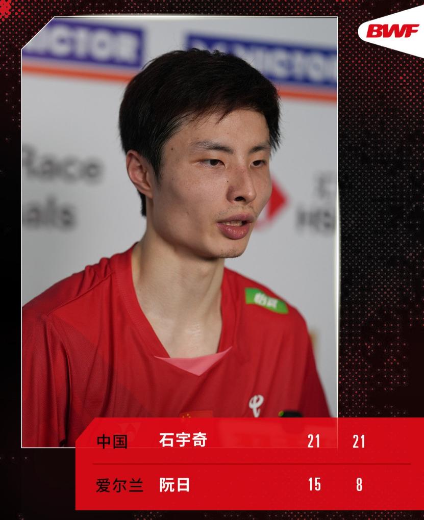 男單方面,國羽三人全部取勝。3號種子石宇奇以21:15、21:8戰(zhàn)勝愛爾蘭選手阮日,李詩灃以21:17、21:9擊敗中國香港隊的伍家朗。四分之一決賽兩人將捉對較量。