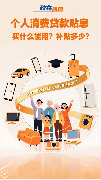 9月1日起一年時(shí)間內(nèi),《個(gè)人消費(fèi)貸款財(cái)政貼息政策實(shí)施方案》給消費(fèi)者送來福利!這項(xiàng)政策直接惠及廣大人民群眾,是中央財(cái)政首次對(duì)個(gè)人消費(fèi)貸款進(jìn)行貼息。
