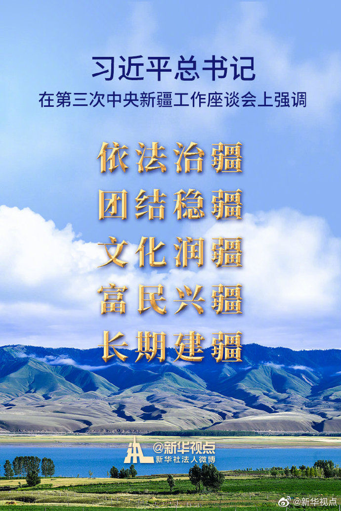 細(xì)心的人們不難發(fā)現(xiàn),這次座談會(huì)則將有關(guān)要求拓展為“依法治疆、團(tuán)結(jié)穩(wěn)疆、文化潤(rùn)疆、富民興疆、長(zhǎng)期建疆”,增加了“文化潤(rùn)疆”和“富民興疆”。