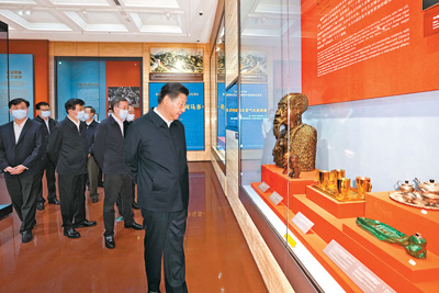 7月16日,中共中央總書記、國家主席、中央軍委主席習(xí)近平在中央禮品文物管理中心參觀“友好往來 命運(yùn)與共——黨和國家領(lǐng)導(dǎo)人外交活動(dòng)禮品展”。新華社記者 李學(xué)仁 攝