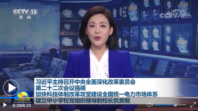加快科技體制改革攻堅建設(shè)全國統(tǒng)一電力市場體系 建立中小學校黨組織領(lǐng)導的校長負責制