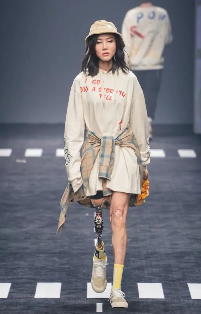 從難以接受 到慢慢與不完美的自己和解 2021年上海時裝周 牛鈺踩著假肢走上T臺 用“機械小鋼腿”征服了所有人