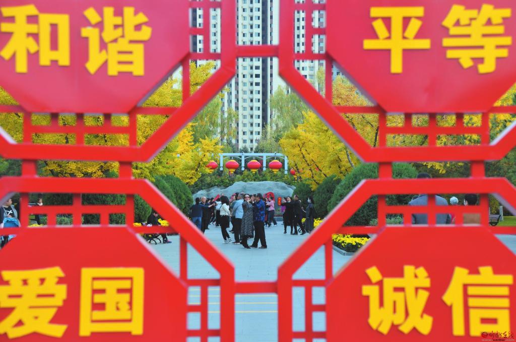 在我市中心城區(qū)的公園、廣場和城市綠地中,以社會主義核心價(jià)值觀、文明城市創(chuàng)建、優(yōu)秀傳統(tǒng)文化等為主題的宣傳展板、景觀造型隨處可見,在弘揚(yáng)傳統(tǒng)文化、傳播城市文明的同時(shí),給市民帶來視覺上的藝術(shù)享受,讓游客在游園賞景中受到熏陶。 (張存良 攝)