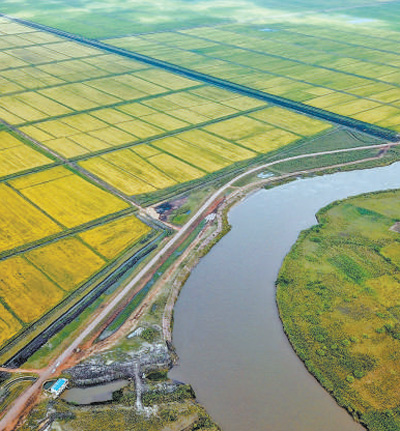 位于莫桑比克加扎省首府賽賽市的萬寶莫桑農業(yè)園是中國在非洲最大規(guī)模水稻種植項目,極大緩解了該國的糧食短缺問題。圖為萬寶莫桑農業(yè)園內的水稻田俯瞰圖。新華社記者 張 宇攝