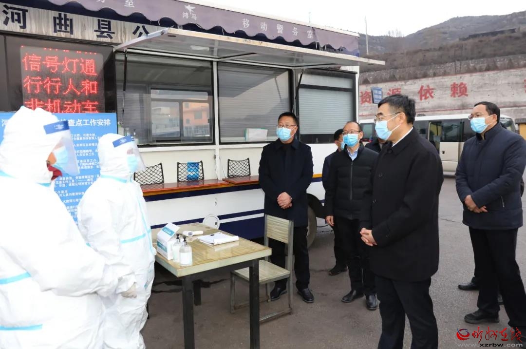 本報訊 (記者任逢春)12月23日,市委副書記、市政府黨組書記李建國在調研途中參加省市疫情防控會議后,立即趕赴我市與陜西省人員物資交流頻繁的河曲縣和保德縣,就從嚴從實細化落實疫情防控措施進行現(xiàn)場督導檢查。市政府秘書長張艮生、市衛(wèi)健委相關負責同志一同檢查。