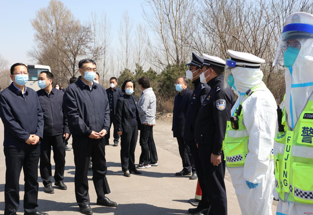 在高速公路代縣北、定襄西出口和原平市沿溝鄉(xiāng)班政鋪村交通卡口,李建國察看疫情防控工作人員操作規(guī)程,聽取涉疫地區(qū)人員入忻相關(guān)流程,了解臨時(shí)隔離設(shè)施配備和后勤保障情況。他要求基層卡口要及時(shí)關(guān)注最新疫情變化,第一時(shí)間更新涉疫區(qū)域名錄,嚴(yán)格驗(yàn)碼測溫,切實(shí)盯緊盯牢守緊守牢入忻第一關(guān)口,把疫情隱患識(shí)別在第一落點(diǎn),確保疫情防控萬無一失。多部門聯(lián)合防疫工作人員要切實(shí)做好自身防護(hù),合理排班保證休息。部門間、縣與縣間要搞好協(xié)同配合,確保防控?zé)o遺漏無死角。