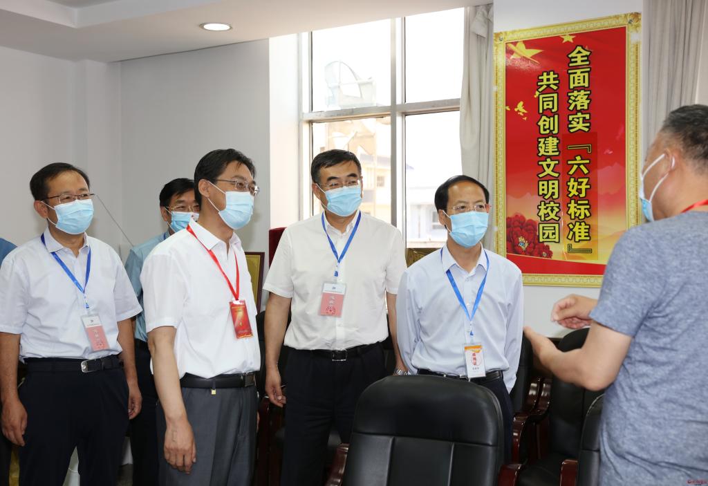 在忻州市高考指揮中心,李青山一行通過(guò)視頻指揮調(diào)度平臺(tái)實(shí)時(shí)察看各縣(市、區(qū))各考點(diǎn)考場(chǎng)試卷啟封、分發(fā)、開(kāi)考情況,察看各考點(diǎn)周邊環(huán)境秩序,到保密室視頻察看各地試卷安全保密措施。隨后深入忻州十中和十一中考點(diǎn),仔細(xì)察看考生進(jìn)入考點(diǎn)時(shí)的測(cè)溫通道和安檢通道,實(shí)地走訪(fǎng)醫(yī)務(wù)室、考務(wù)室、保密室,通過(guò)視頻監(jiān)控察看各考場(chǎng)情況。李青山指出,高考是實(shí)現(xiàn)教育公平、社會(huì)公平的重要制度,承載著為國(guó)選人育人的重大使命。各級(jí)各相關(guān)部門(mén)要充分認(rèn)識(shí)做好疫情常態(tài)化防控形勢(shì)下高考工作的特殊性、重要性、復(fù)雜性,周密部署,扎實(shí)抓好高考期間各項(xiàng)工作,全力保障高考順利進(jìn)行。要按照職責(zé)分工和任務(wù)安排,抓好試題保密、考場(chǎng)引導(dǎo)、考風(fēng)考紀(jì)等關(guān)鍵環(huán)節(jié),切實(shí)把高考工作組織好、落實(shí)好,要加強(qiáng)考點(diǎn)周?chē)h(huán)境整治等高考各項(xiàng)服務(wù)保障,為考生營(yíng)造安靜、有序、寬松的考試環(huán)境。各相關(guān)部門(mén)要按照高考有關(guān)規(guī)定,密切配合、通力合作,確保各項(xiàng)工作做到細(xì)而又細(xì)、實(shí)而又實(shí),把高考服務(wù)工作做得更細(xì)更扎實(shí),為廣大考生穩(wěn)定發(fā)揮提供良好考試環(huán)境。