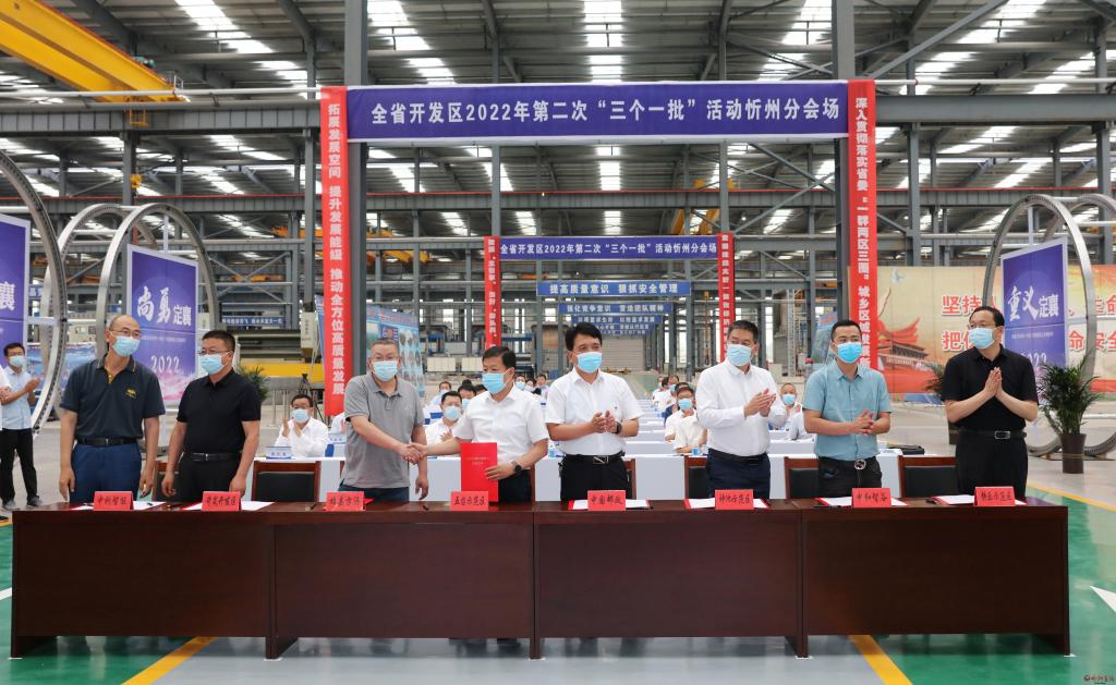 在定襄經(jīng)濟(jì)技術(shù)開(kāi)發(fā)區(qū)寶航重工有限公司車(chē)間,與省主會(huì)場(chǎng)同步,李建國(guó)主持舉行了忻州市“簽約一批”代表項(xiàng)目集中簽約活動(dòng)。忻州經(jīng)濟(jì)開(kāi)發(fā)區(qū)與山西汽運(yùn)集團(tuán)“汽運(yùn)網(wǎng)絡(luò)貨運(yùn)數(shù)字產(chǎn)業(yè)園項(xiàng)目”、原平經(jīng)濟(jì)技術(shù)開(kāi)發(fā)區(qū)與山西晉海清潔能源有限公司“500MW/1GWh共享儲(chǔ)能電站項(xiàng)目”、繁峙經(jīng)濟(jì)技術(shù)開(kāi)發(fā)區(qū)與山西華茂智能新材料有限公司“綜合治理提升工程項(xiàng)目”、定襄經(jīng)濟(jì)技術(shù)開(kāi)發(fā)區(qū)與德福基金屬制品有限公司“年加工5000噸鋼材項(xiàng)目”、靜樂(lè)現(xiàn)代農(nóng)業(yè)產(chǎn)業(yè)示范區(qū)與北京中和智谷循環(huán)經(jīng)濟(jì)科技有限公司“200MW農(nóng)牧光儲(chǔ)一體化項(xiàng)目”、神池現(xiàn)代農(nóng)業(yè)產(chǎn)業(yè)示范區(qū)與中國(guó)郵政集團(tuán)“郵件處理中心項(xiàng)目”、五臺(tái)現(xiàn)代農(nóng)業(yè)產(chǎn)業(yè)示范區(qū)與雄縣方濟(jì)商貿(mào)有限公司“特色豆制品加工項(xiàng)目”、岢嵐經(jīng)濟(jì)技術(shù)開(kāi)發(fā)區(qū)與中科人工智能科技有限公司“航天科技產(chǎn)業(yè)園項(xiàng)目”等8個(gè)代表項(xiàng)目分兩個(gè)批次進(jìn)行了簽約。