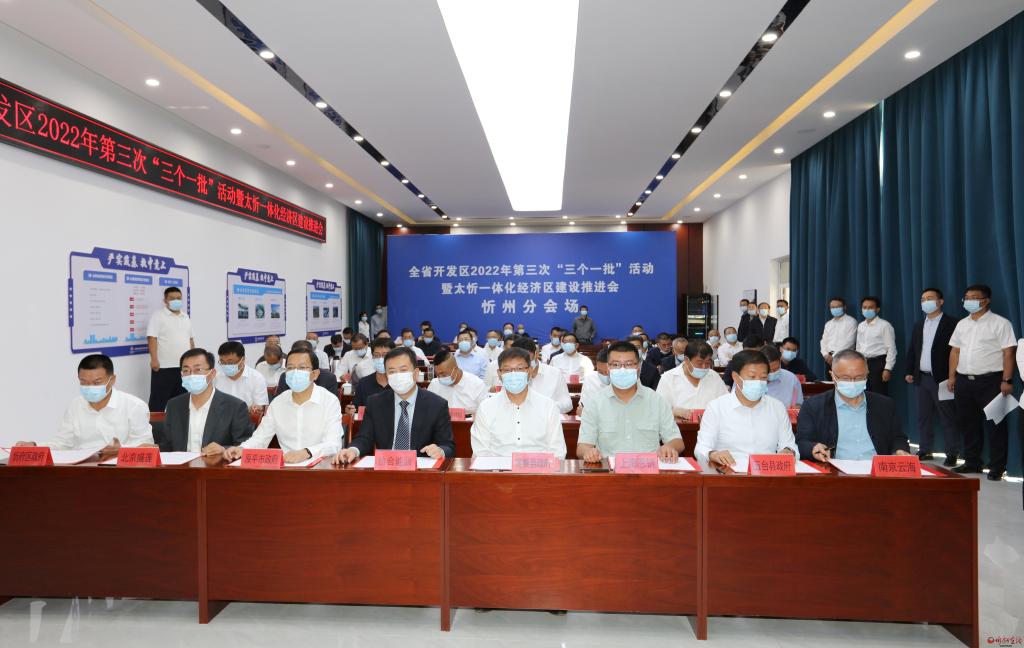 9月5日,全省開發(fā)區(qū)2022年第三次“三個一批”活動暨太忻一體化經(jīng)濟區(qū)建設推進會舉行,我市在原平經(jīng)濟技術開發(fā)區(qū)設立分會場,與全省同步舉行相關活動。市委副書記、市長李建國匯報我市此次“三個一批”項目和太忻一體化經(jīng)濟區(qū)忻州片區(qū)建設推進情況。省委常態(tài)化督導一組副組長郭海斌,市領導張文偉、溫建軍、張宇光、羅志宏,市政府秘書長張艮生,市直相關部門、8個省級開發(fā)區(qū)管委會、太忻一體化經(jīng)濟區(qū)忻州區(qū)負責人和簽約項目代表等在忻州分會場出席活動。