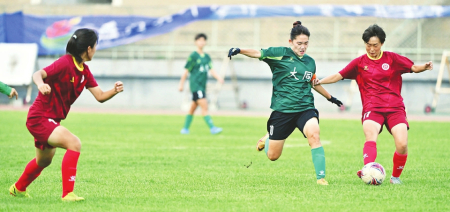 8月10日下午,第十六屆省運(yùn)會女子甲組足球比賽落下帷幕,太原、大同、晉中分獲前三名。第五輪場序大同隊(duì)與呂梁隊(duì)的比賽中,隨著裁判一聲哨響,比賽正式打響。雙方球員在場上奮力奔跑,拼搶防守,場下的觀眾為球員們加油吶喊,現(xiàn)場氣氛火熱。大同隊(duì)最終以3∶0戰(zhàn)勝對手,奪得第二名。