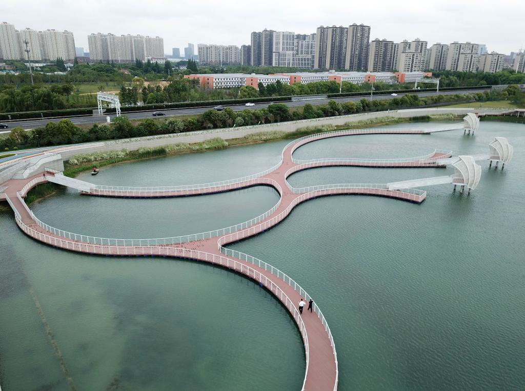 “我們按生態(tài)鏈要素,采用底泥改良、水生植物系統(tǒng)立體構(gòu)建、水生動物及土著微生物補給、生態(tài)監(jiān)測、運行維護等技術(shù)措施,構(gòu)建完善的生態(tài)體系,通過自養(yǎng)生態(tài)系統(tǒng)與異養(yǎng)生態(tài)系統(tǒng)的協(xié)同作用,打造了一座包括植被自然群落、沿湖生態(tài)濕地、親水棧道、觀鷺平臺、彩虹跑道的現(xiàn)代化城市濕地公園。”吳湧說。