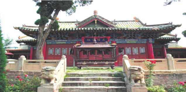 泰山廟位于原平市崞陽鎮(zhèn)平定街村。據(jù)清《崞縣志》記載,創(chuàng)建于元至治三年(1323)。明、清均有修葺。坐北朝南,東西長31.8米,南北寬52.3米,占地面積約1663平方米。中軸線僅存正殿,兩側(cè)為東西配殿及耳房。正殿及東西配殿為明代遺構,余為清代遺存。正殿石砌臺基,前設月臺,上置勾欄、望柱,面寬五間,進深五椽,單檐懸山頂,六檁前廊式構架,斗拱五踩,單翹單昂,裝修原制不存。正殿前建有抱廈三間,單檐歇山頂?,F(xiàn)新塑像23尊。