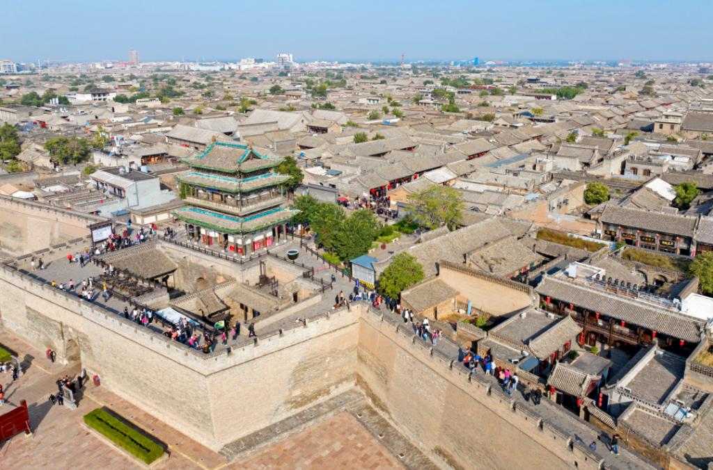 ▲2023年10月3日,游客在山西平遙古城游玩。平遙古城始建于西周宣王時期,明代洪武三年重建、擴(kuò)修城池,距今已有2700余年的歷史,是現(xiàn)今中國境內(nèi)保存最為完整的一座古代縣城。李現(xiàn)俊攝