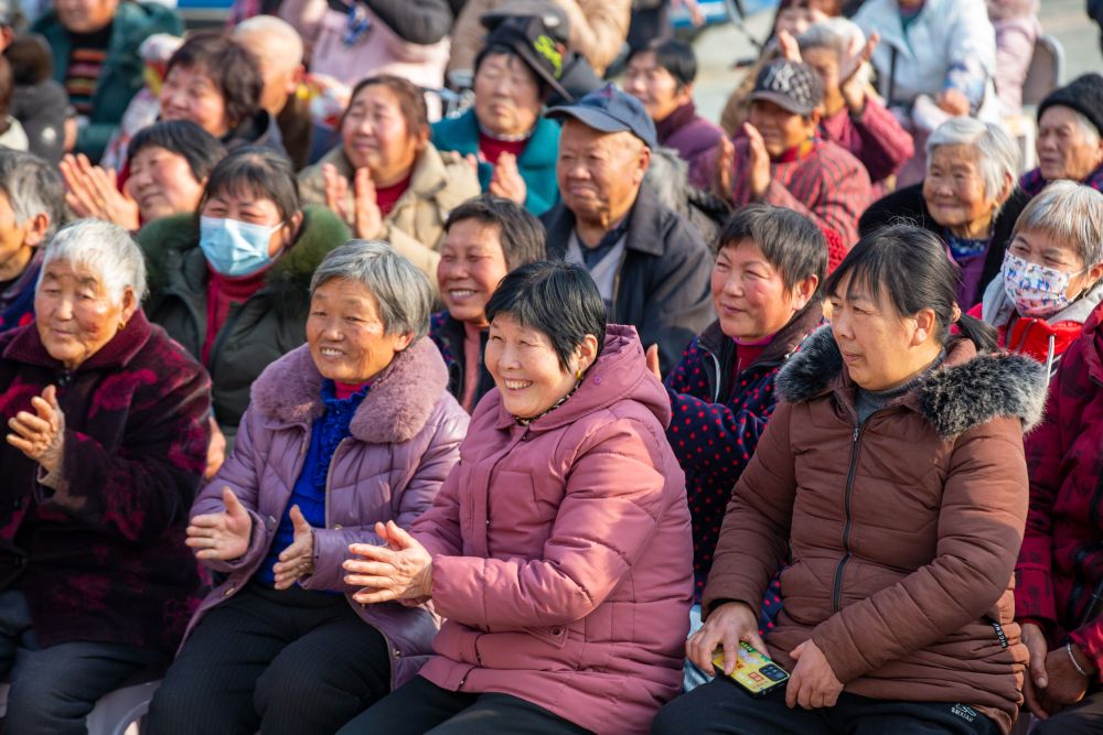 2024年2月11日,江蘇省海安市胡集街道園莊村村民在“村晚”上欣賞文藝節(jié)目。新華社發(fā)(翟慧勇攝)