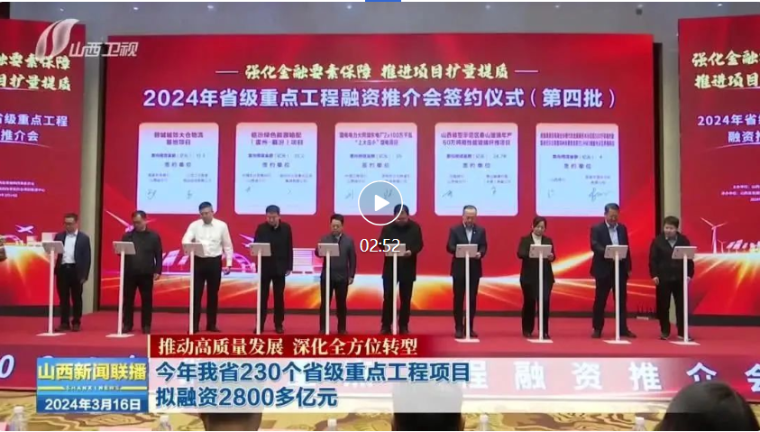 今年全國兩會(huì),《政府工作報(bào)告》明確提出“積極擴(kuò)大有效投資”。3月14日,“強(qiáng)化金融要素保障 推進(jìn)項(xiàng)目擴(kuò)量提質(zhì)”2024年省級重點(diǎn)工程項(xiàng)目融資推介會(huì)在太原舉行,拉開了今年金融機(jī)構(gòu)與重大項(xiàng)目交流對接的序幕。詳情請點(diǎn)擊視頻