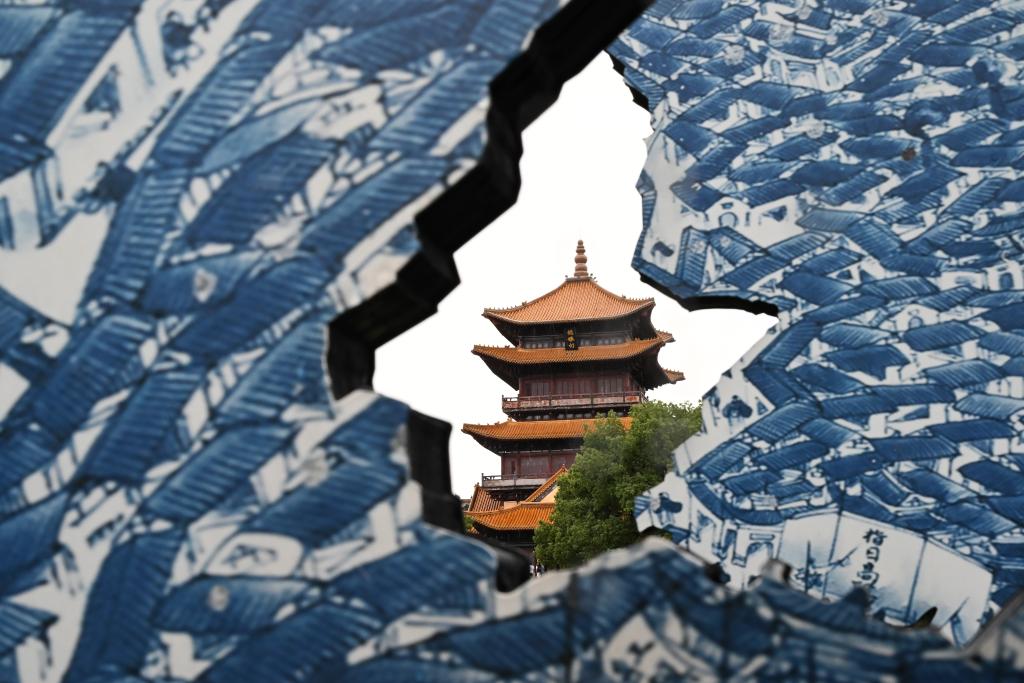 透過創(chuàng)意青花瓷片拍攝的龍珠閣。新華社記者 隋尚君 攝 細雨中,龍珠閣前破碎的青花瓷片旁,依然聚集著排隊拍照的人群。照片里,從縫隙中顯露的龍珠閣姿態(tài)各異,游客們相互對比,面露欣喜。 漫步陶陽里,新與舊、熟悉與陌生、現(xiàn)實與想象交相輝映,展現(xiàn)出中國瓷都迷人而幽遠的新氣象。 (責任編輯:蔡文斌) |