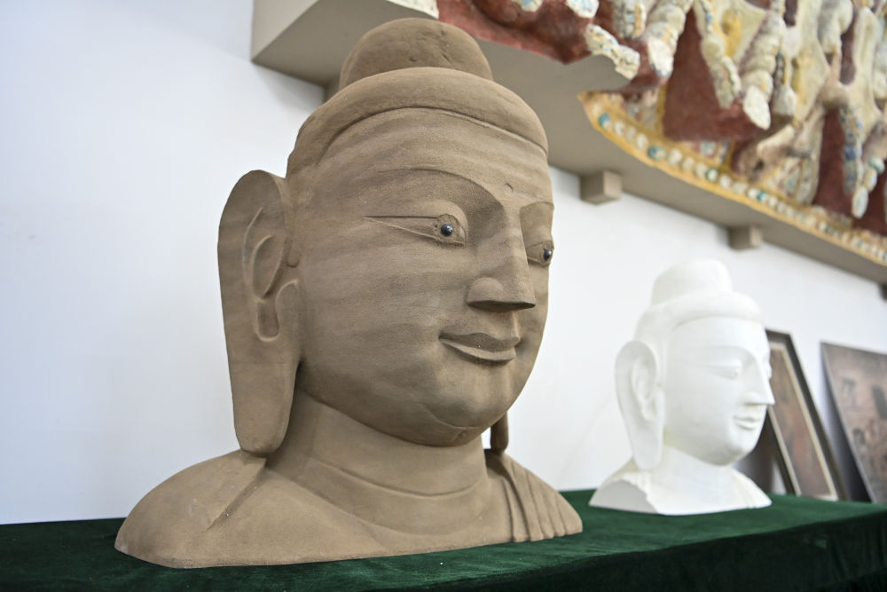 這是4月16日在云岡研究院數(shù)字化保護(hù)中心展廳拍攝的3D打印佛像模型。云岡研究院還通過(guò)高校合作、對(duì)外交流等方式